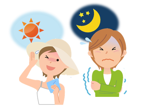 特に1日のうちや室内外の気温差が7℃以上あると、体温調節のためにエネルギー消費量が増え、だるさや頭痛、肩こり、不眠などの症状が現れやすくなります。