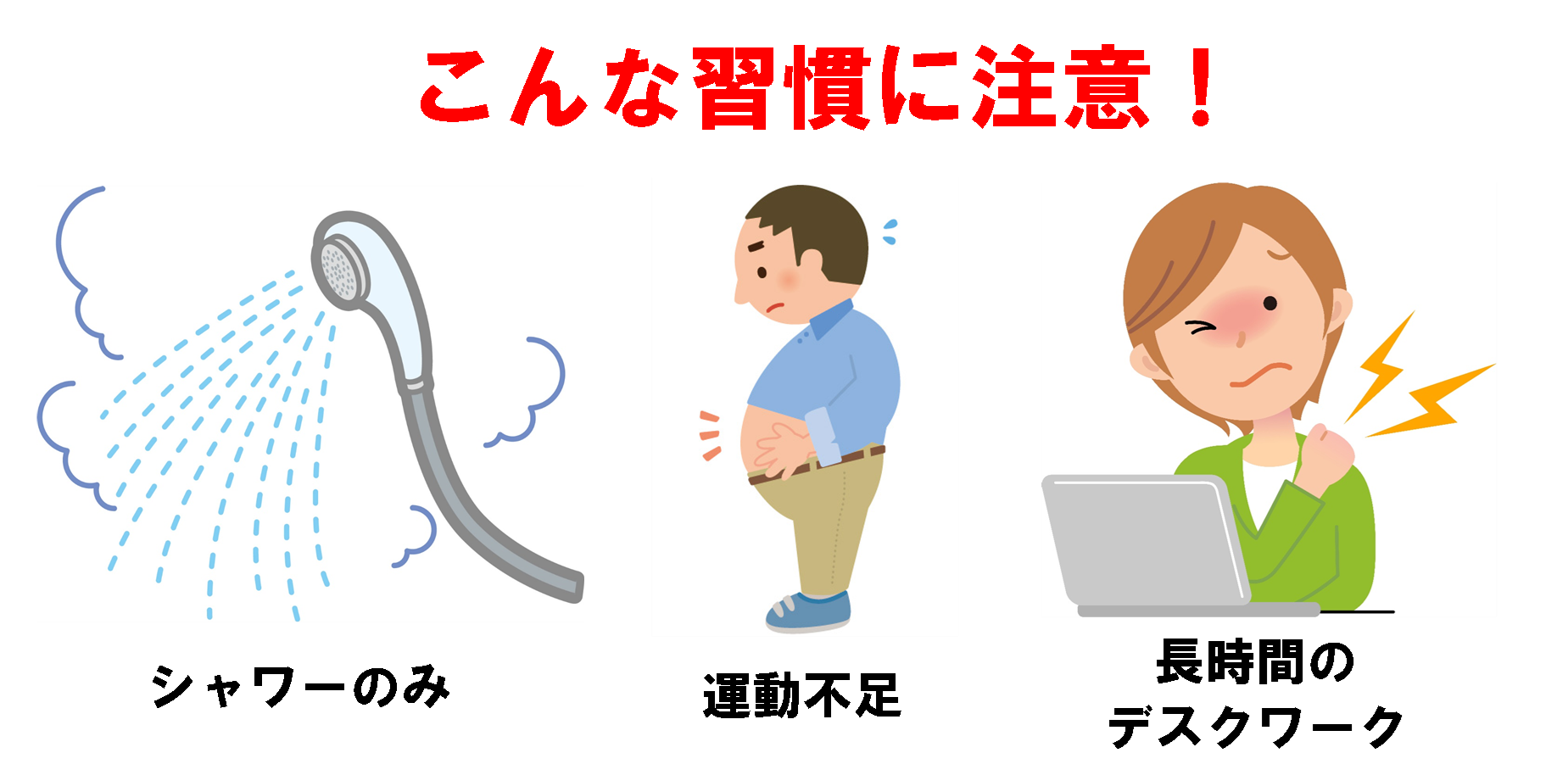 現代のライフスタイルでは、シャワーだけで済ませる入浴習慣や、長時間のデスクワーク、運動不足などが血流を悪化させ、寒暖差に対応する抵抗力を弱めてしまいます。